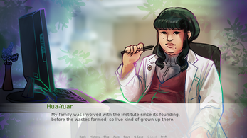 The multicolored line art is so good and makes it feel like something weird is happening at the institute. I also like how it's structured like you're exploring the facility, makes it feel like you're actually in a space. Learning from Shu-Gong that the other two are actually somewhat unpleasant was a good twist, considering how nice they are to you at the beginning. looking forward to seeing what happens later on.